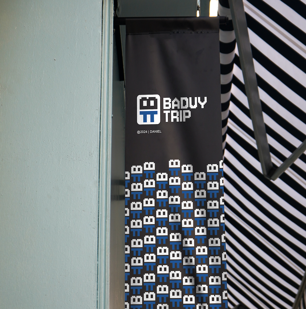 Logo Baduy Trip dirancang oleh Daniel Kawalo, perancangan dengan memperhatikan pola referensi visual masyarakat lokal.
